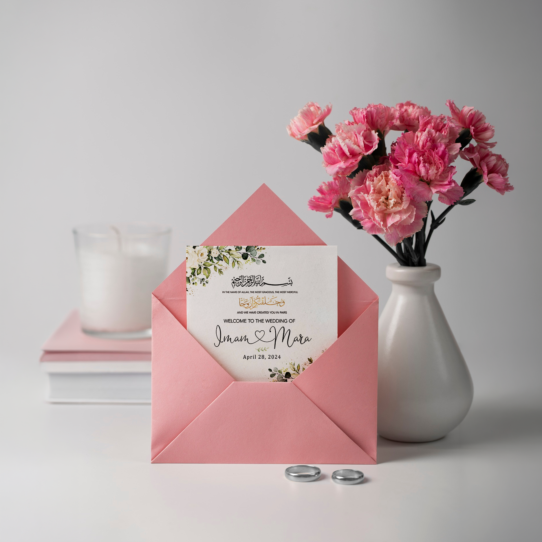 Gold script invitations, botanical RSVPs, welcome boards, place cards, table numbers, seating charts, and step-and-repeat backdrops, all produced in-house. Specialty finishes available. Rush timelines handled honestly, we'll tell you exactly what's possible before you commit. From invitations to everything the day needs, printed right and delivered on time.